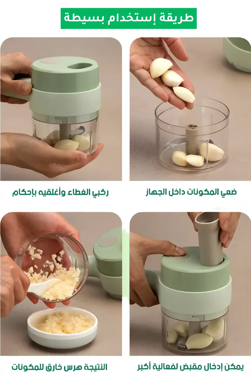 ⏱️ توفّر وقت ✋ آمنة 🔋 بطارية قوية 🧼 تنظيف سهل 👜 محمولة 🏠 مناسبة لكل دار ✔️ التقطيع بدون جهد ✔️ حجمها مناسب وسهلة التخزين والنقل ✔️ خامات قوية تتحمل الاستخدام ومقاومة للصدأ ✔️ تصميم آمن للاستخدام أثناء التقطيع