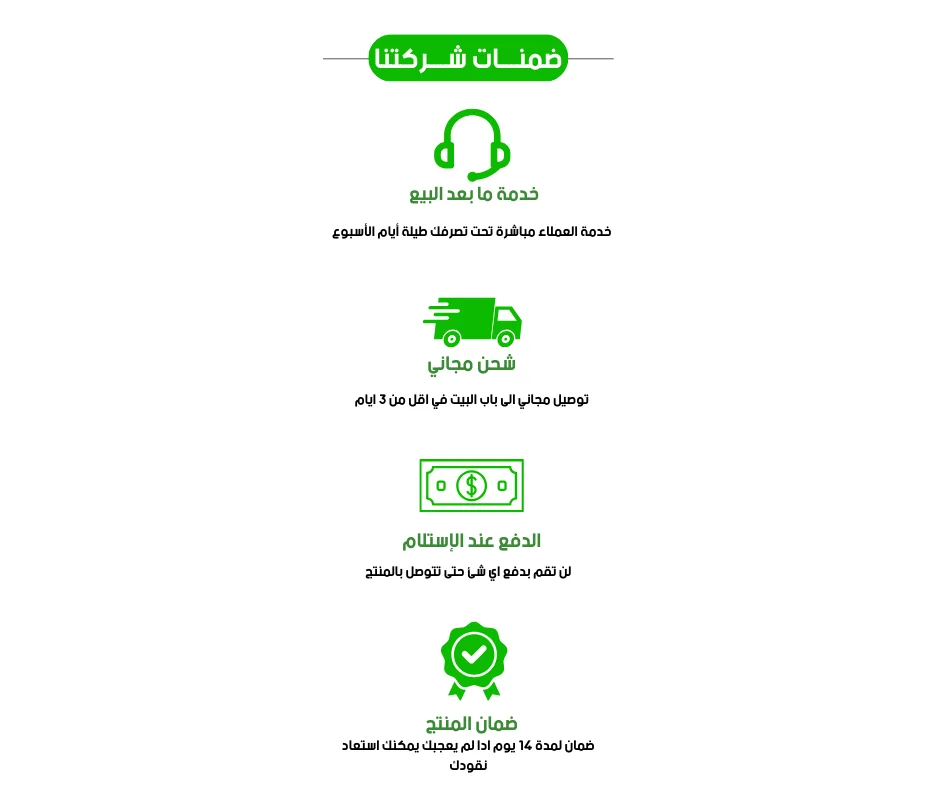 جميع المنتجات المعروضة في متجرنا تخضع لسياسة الاستبدال واسترداد الأموال وفقًا للشروط والأحكام المبينة على هذه الصفحة.